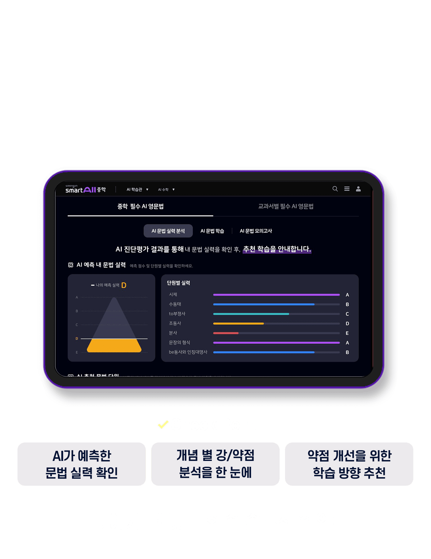 AI가 나의 영어 문법 실력을 진단 및 예측해주고,