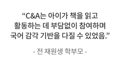 C&A논술학원은 대치동 학부모에게 인정받는 커리큘럼을 바탕으로, 25년 이상 대치 독서논술학원의 표준으로 자리잡은 학원입니다.