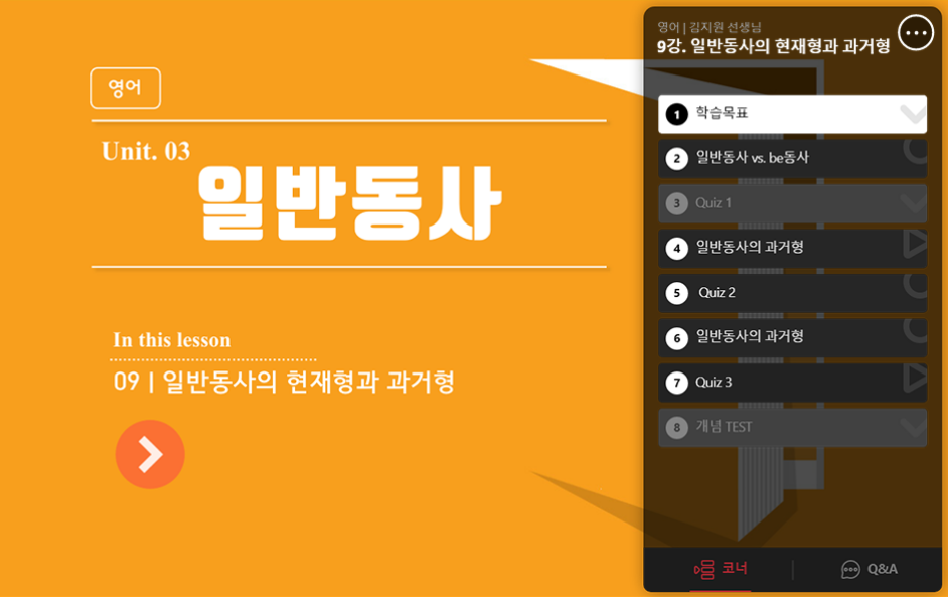 개념 별 낱개 강의를 통해 학습하고,